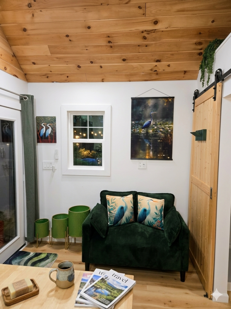 Nestled near the serene shores of the Delaware Bay, Heron’s Nest is more than just a place to stay—it’s a peaceful slice of nature designed for those looking to disconnect and recharge. Our tiny homes offer a unique blend of modern comfort and coastal charm, providing a rare opportunity to immerse yourself in Delaware’s beautiful ecosystems. Whether you’re waking up to a golden sunrise, spending your afternoon paddling through local waterways, or cozying up in our screened-in gazebo, we invite you to experience the quiet beauty of life on the bay.